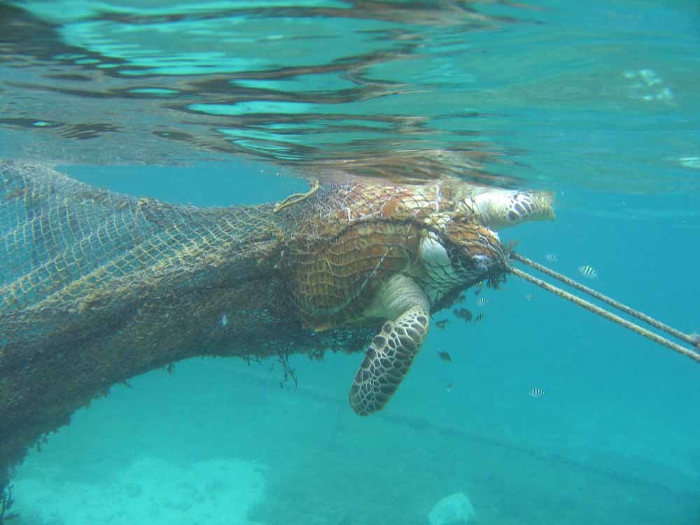 アオウミガメが増えると問題があるのですか? アオウミガメは草食性の動物です。そのため、個体数が増加すると海草が減少することが知られています。海草は海洋生態系にとって重要な場所で、特に魚類やイカの中には海草場がないと生きていけない種もいます。日本でも西表島をはじめ各地で、アオウミガメの食害によって海草場が減少しています。また、漁業への被害も多く、漁網が破られたり、売り上げにつながる魚がつぶされてしまったりします。