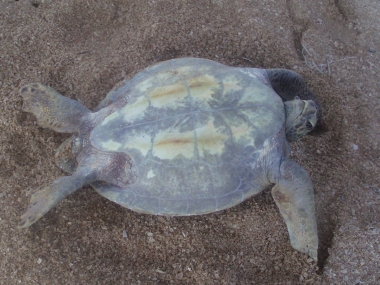 ヒメウミガメヒメウミガメ:大西洋、インド洋、太平洋の東側で見られます。つまり、日本は生息域ではありませんが、ウミガメは泳ぐ力が強く、海は繋がっているためにごく稀に見つかることがあります。日本では産卵しませんが、コスタリカやではアリバタと呼ばれる集団産卵をします。体は他のウミガメよりも小さく、大人でも甲らは70㎝ほどです。